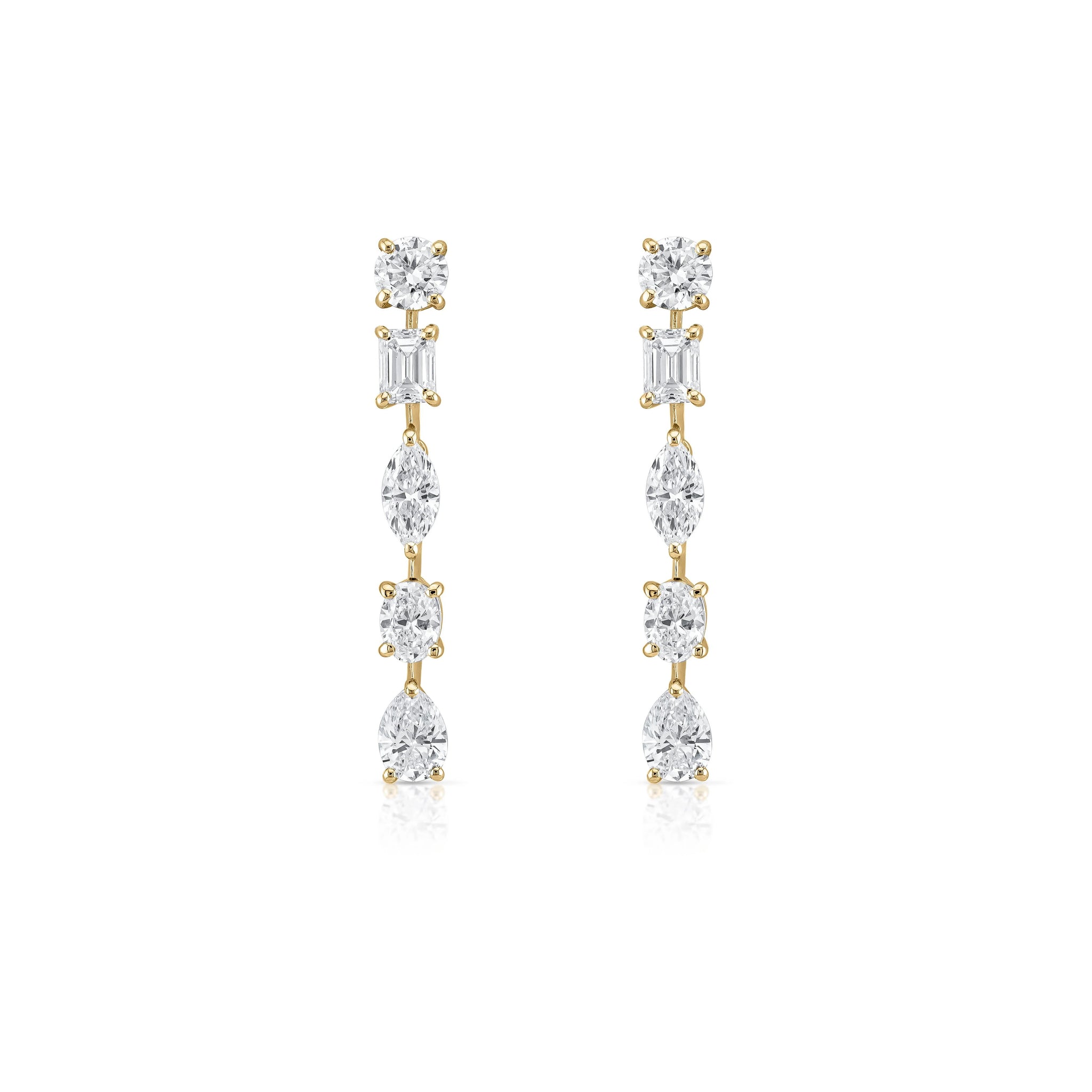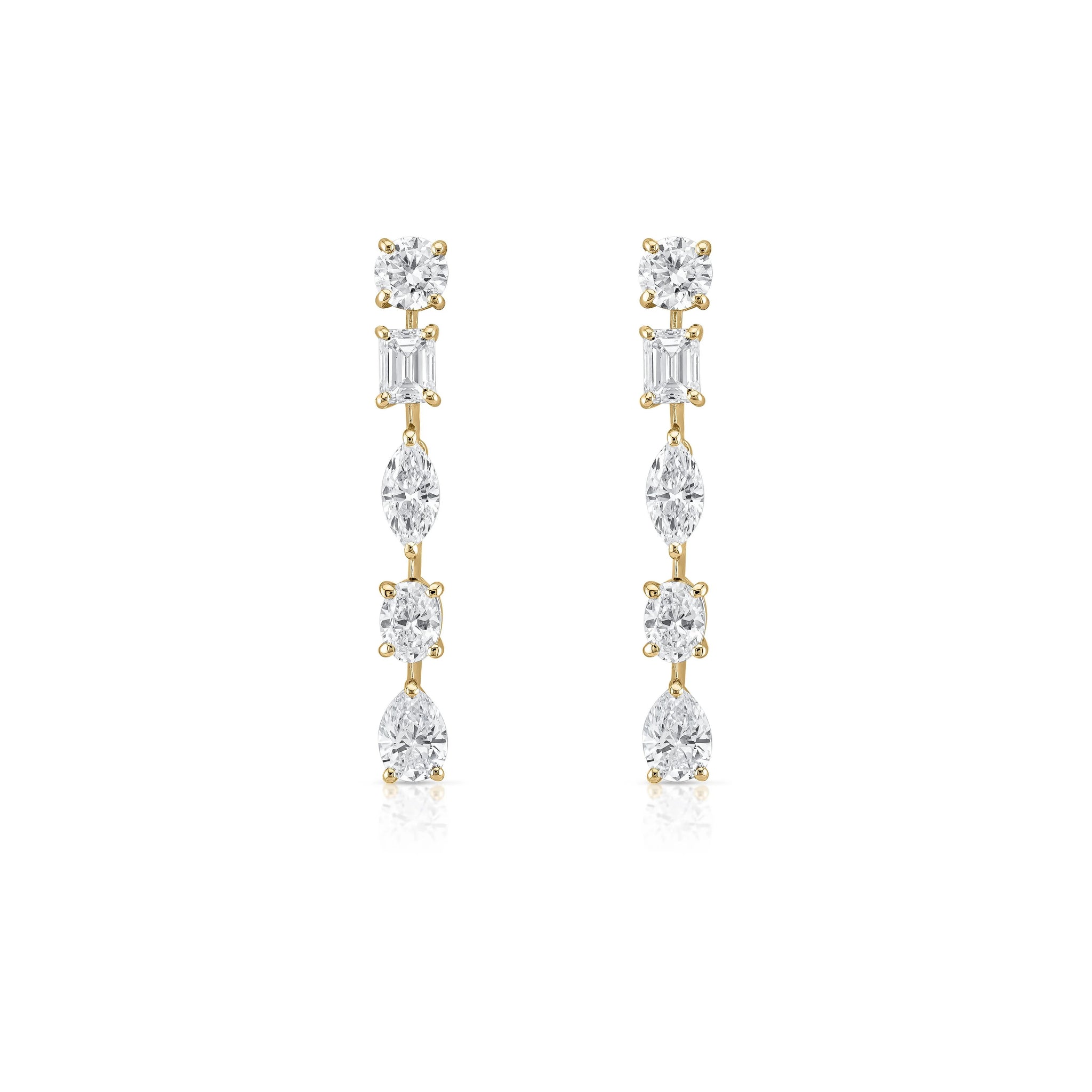 Playful yet refined, the Multi-Shape Diamond Earrings are designed to showcase the beauty of variety in perfect harmony. Handcrafted in 18k gold and set with 2.34 carats of lab-grown diamonds, the earrings feature an artful mix of oval, emerald, marquise, round, and pear cuts — each chosen to highlight a unique facet of brilliance.