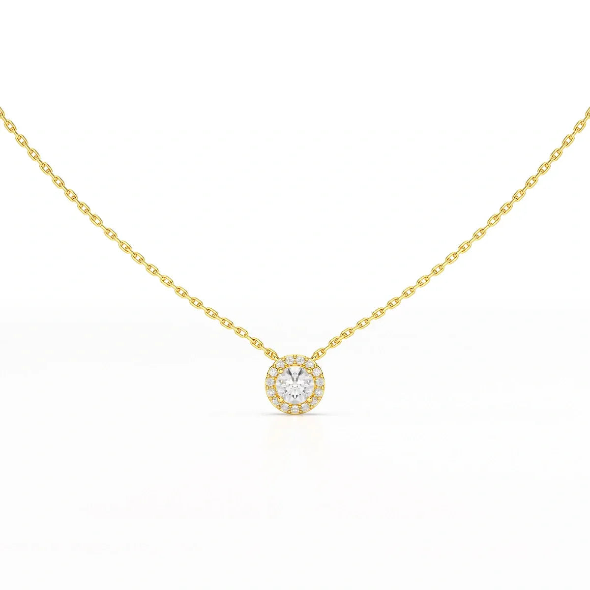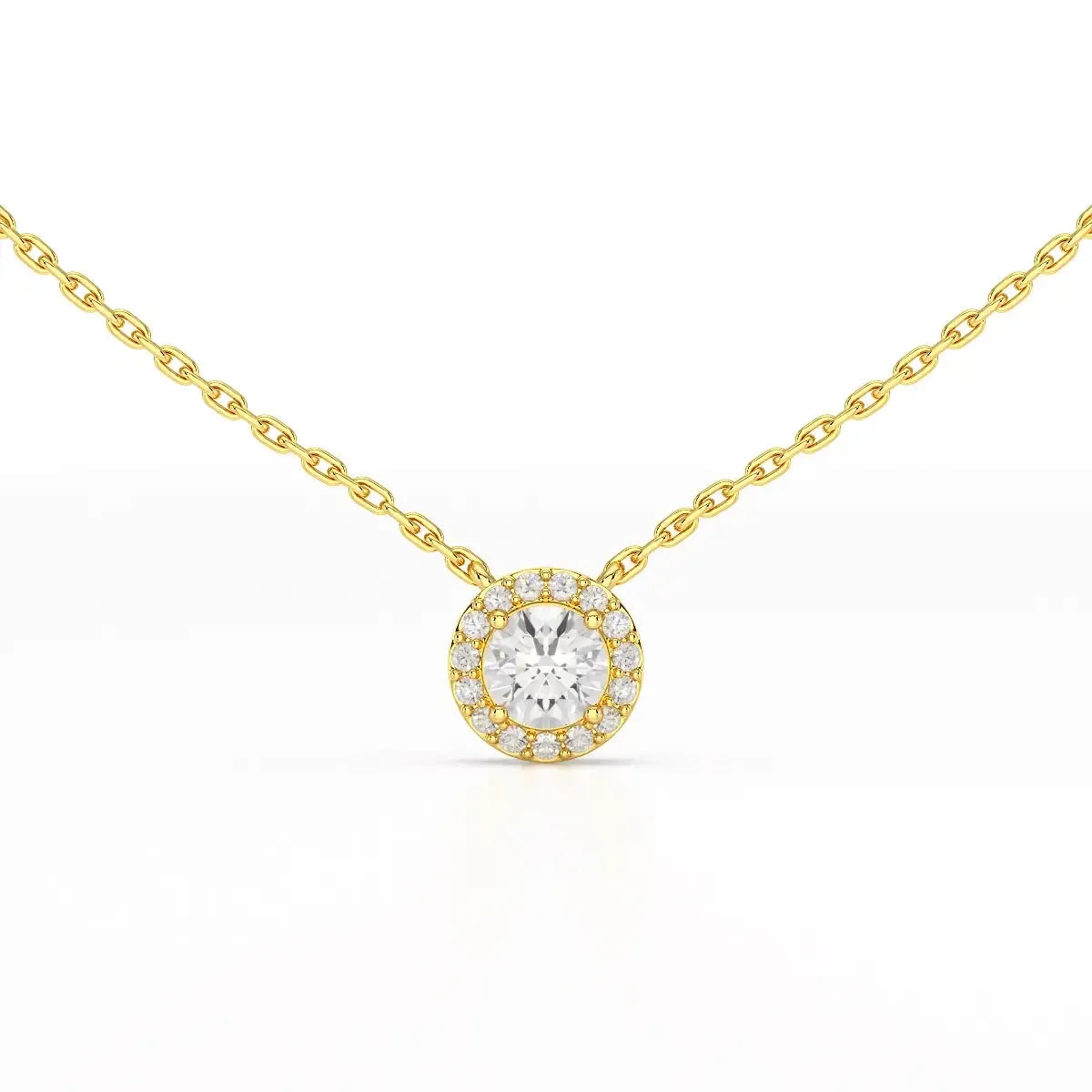 Make a statement of refined elegance with the 0.60 CT Round Cut Halo Lab Diamond Chain Pendant from The Centre Stone Fine Jewellery Collection. The center round-cut lab-grown diamond is beautifully encircled by a halo of smaller diamonds, enhancing its sparkle and radiance. Perfectly crafted for lasting beauty, this pendant combines ethical luxury with timeless design. Ideal for gifting or personal indulgence, it adds sophistication to any outfit, whether for daily wear or special occasions. Its versatile style allows it to shine alone or layered with other fine jewellery pieces for a modern, chic look.